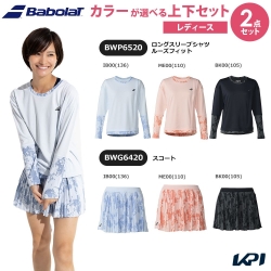 【上下セット】バボラ Babolat テニスウェア レディース ロングスリーブシャツ ルーズフィット×スコート BWP6520-BWG6420 2026SS