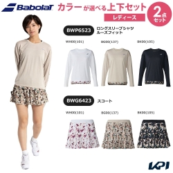 【上下セット】バボラ Babolat テニスウェア レディース ロングスリーブシャツ ルーズフィット×スコート BWP6526-BWG6426 2026SS